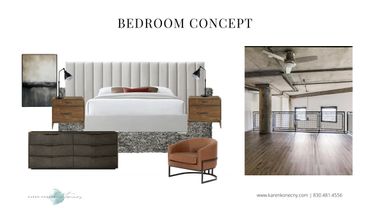 A masculine loft with rich industrial modern appeal. Cognac leather, iron, steel, concrete and shagreen leather add amazing textue to warm up an otherwise cold space.